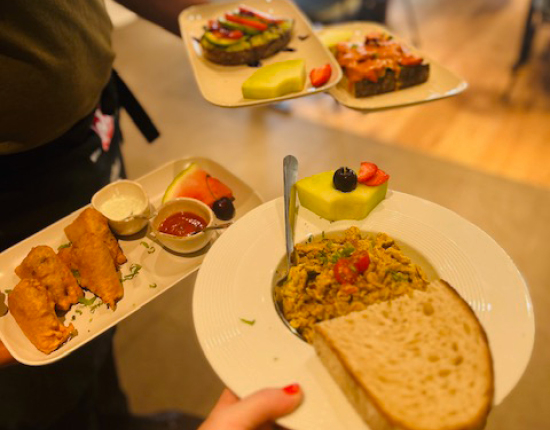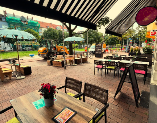 Eine einzigartige Kombination indischer und deutscher Küche. Neben dem ganztägigen Frühstück gibt‘s einen wechselnden Mittagstisch (12 - 15 Uhr) mit indischen Spezialitäten, von Thali bis Daal, dazu warme Bowls. Es wird frisch gekocht – den Schärfegrad kann man selbst bestimmen. Außerdem Eis von Luiciellas aus Hamburg und Kaffee von der Hannoverschen Kaffeemanufaktur. Oder wie wäre es mit hausgemachtem Kuchen, Waffeln, Matcha oder Pink Chai? Was noch? Catering und Feiern bis zu 80 Personen, dazu gelegentlich Mantrakonzerte und Workshops.