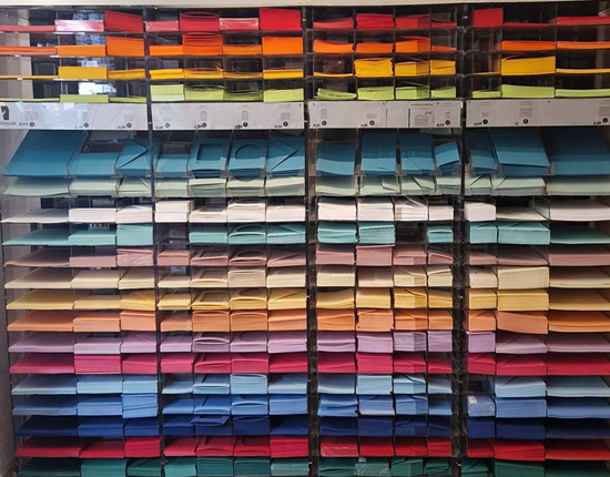 Papier, eine große Auswahl an Grußkarten, Helium-Luftballons, Stifte, Notizbücher, Kalender und Schulbedarf.