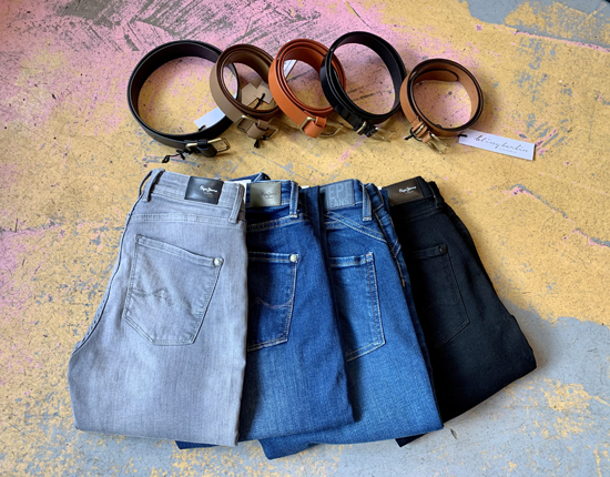 Jeanshosen und Gürtel in unterschiedlichen Designs