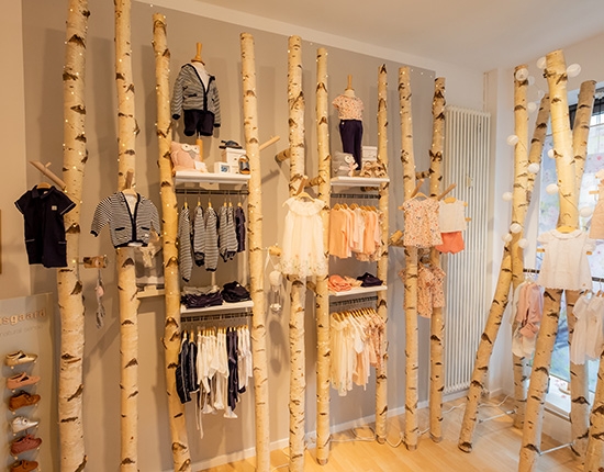 Baby- und Kinderboutique mit einladendem Interieur aus Holz- und Birkenelementen