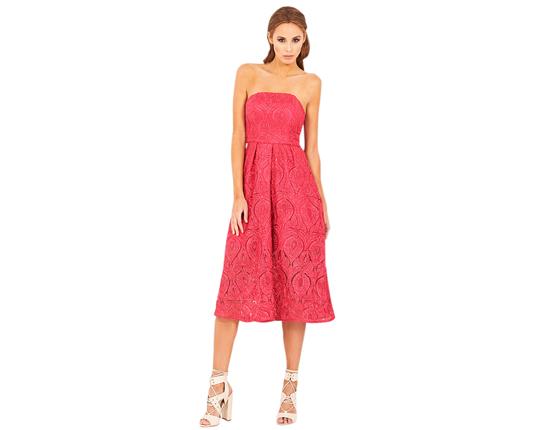 Pure Leichtigkeit und Romantik versprüht dieses bezaubernde Bustierkleid in strahlendem Beerenton. Das eng anliegende Korsagenoberteil wird von dem leicht ausgestellten, schwingenden Rockteil wunderbar ergänzt. Der raffiniert bestickte, leicht schimmernde Netzstoff setzt zusätzliche Akzente. Schweben Sie stilsicher über das Parkett!