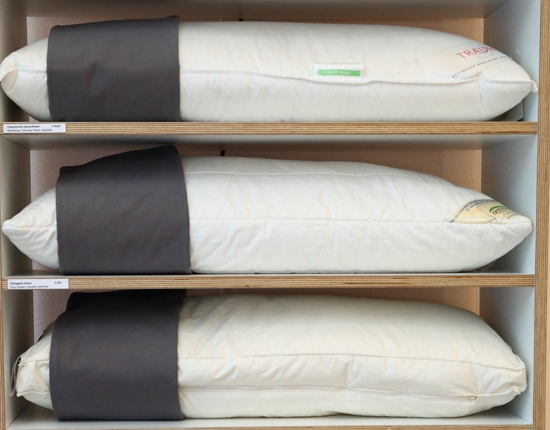 Angenehme Kopfkissen in verschiedenen Größen und Härtegraden sorgen für einen erholsamen Schlaf