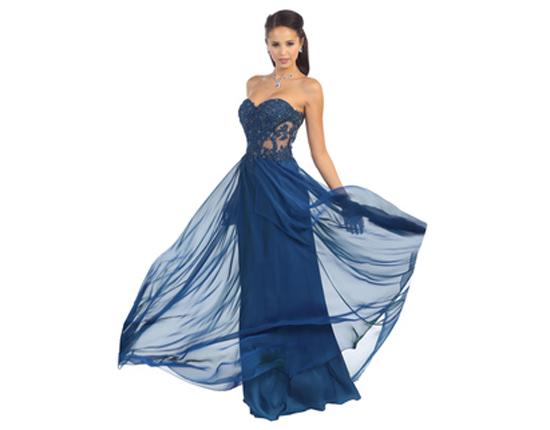 Traumhafte Bustierrobe in strahlendem Ozeanblau. Absoluter Blickfang ist das feminine Oberteil aus transparentem Stoff und feiner, mit Pailetten besetzter Spitze. Der schwingende, leicht changierende Rock setzt reizende Akzente. Das herzförmige Dekolleté umschmeichelt Ihre weibliche Silhouette. Glamourös und atemberaubend zugleich!