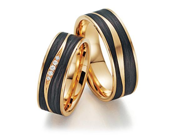 Carbon als Hightechwerkstoff begeistert durch seine absolute Stabilität und Beständigkeit gegen Chemikalien und Temperaturschwankungen vor allem die Herren. Zusätzlich gibt es beim Tragen kaum Abnutzungserscheinungen und die mit Carbon gefertigten Trauringe sind je nach Modell deutlich leichter als Ringe die komplett aus einem Edelmetall gefertigt sind. Kombiniert mit farblich abgestimmten Legierungen wie Apricotgold, Rotgold, Palladium oder Platin und wunderschön strahlenden Brillanten, bezaubern die Modelle natürlich auch Frauen, die den besonderen Trauring möchten.