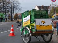 Bis zu 80kg frische Früchte und Gemüse kann der Öpfelchasper mit seinem klassischen Anhänger durch die Straßen Hannovers ziehen. Ein Stahlrahmen fürs Fahrrad hat sich bewährt...:)