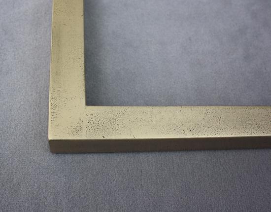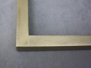 Vergolderrahmen und Modellrahmen sind Rahmen, deren Oberfläche erst nach dem Zusammenfügen der Leisten gestaltet wird. Der Rahmen wirkt wie aus einem Stück gefertigt. Hier ein Mondgoldrahmen von Conzen in schlichter Eleganz.