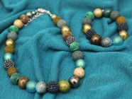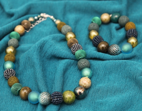 Kette und Armband mit bunten Kugeln.