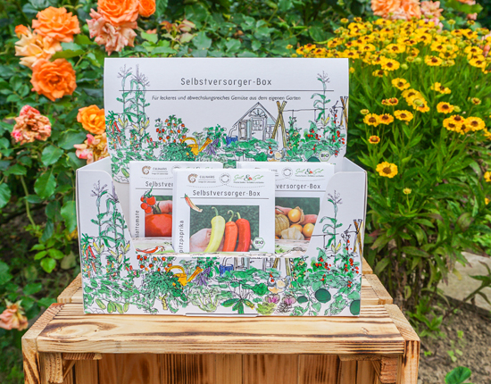 „Selbstversorger-Box“ zum ganzen Gartenjahr für hitze-tolerante robuste Pflanzen.