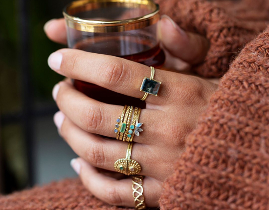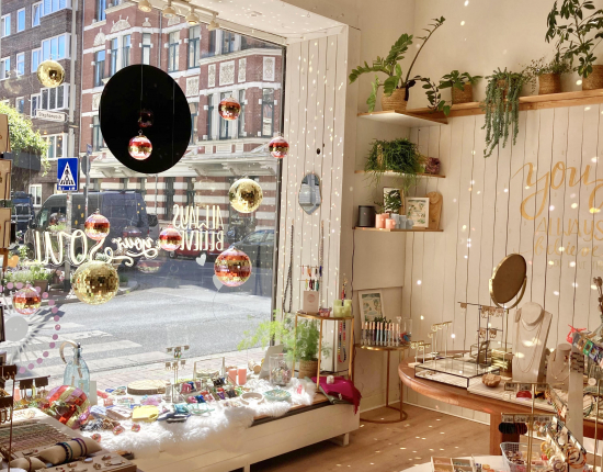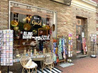 Das dritte Geschäft von Riva-Inhaberin Steffi Spitzl ist auf Schmuck in allen Formen und Materialien spezialisiert, von kleinen und größeren Hersteller*innen – vor allem aber glitzert es natürlich von allen Seiten in Gold.